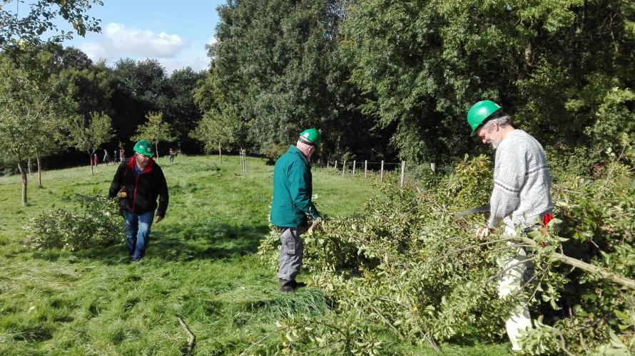 Natuurlijk bleef het niet alleen bij uitleg, er moest ook gewerkt worden. Om veilig te snoeien hebben we dat in groepjes van vijf mensen gedaan, waarbij Frans nog veel praktische tips aan de deelnemers heeft gegeven.